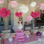 - Decoración aérea con pompones, cintas o mariposas, perfecta para salones grandes.