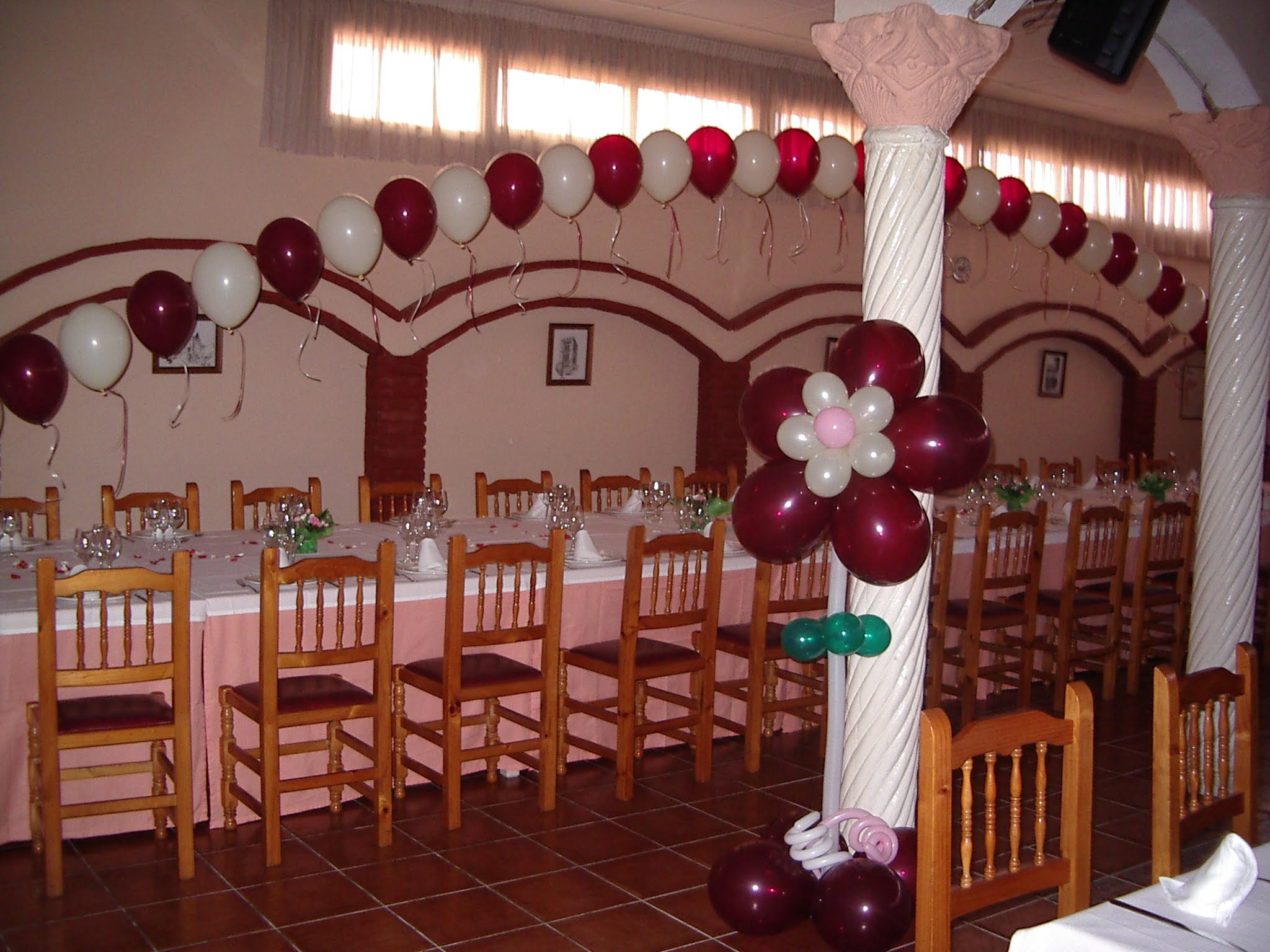 Si tu comunión es en un salón amplio, podemos crear una decoración más estructurada con globos alineados y figuras temáticas. Si es en un restaurante más íntimo, adaptamos los tamaños y colores para que el ambiente sea acogedor, elegante y fotogénico.
